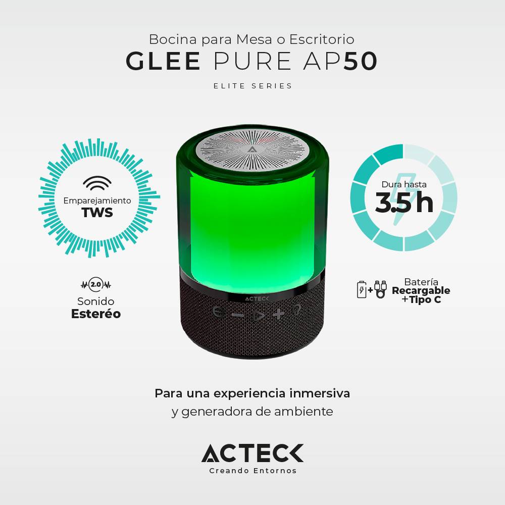 Bocina inalámbrica Bluetooth Glee Pure AP50 Elite Series, Bluetooth 5.2, Potencia 20w RMS