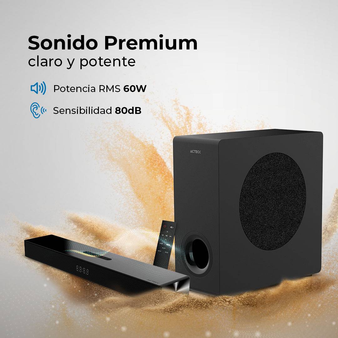 Availability: In StockSistema De Soundbar 2.1 Dynamic Thin BS600 Advanced Series,Control Remoto incluido, Color Negro. AC-940801