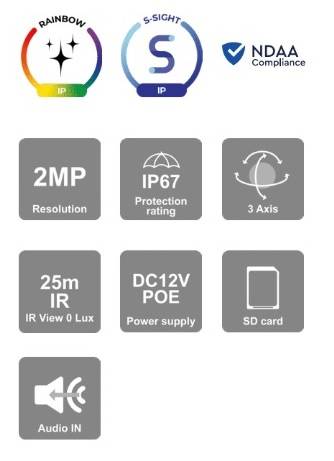 Availability: Out of StockCamara bala IP 2 MP Full Color, Lente fijo 3.6mm (84.6°), IR hasta 25 mts, Analitico basico DDA, microfono, WDR, SD(128GB), IP67