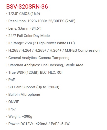 Cámara Bala PROVISION-ISR BSV-320SRN-36