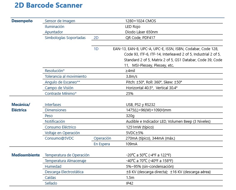 - Tipo de escaneado:2D