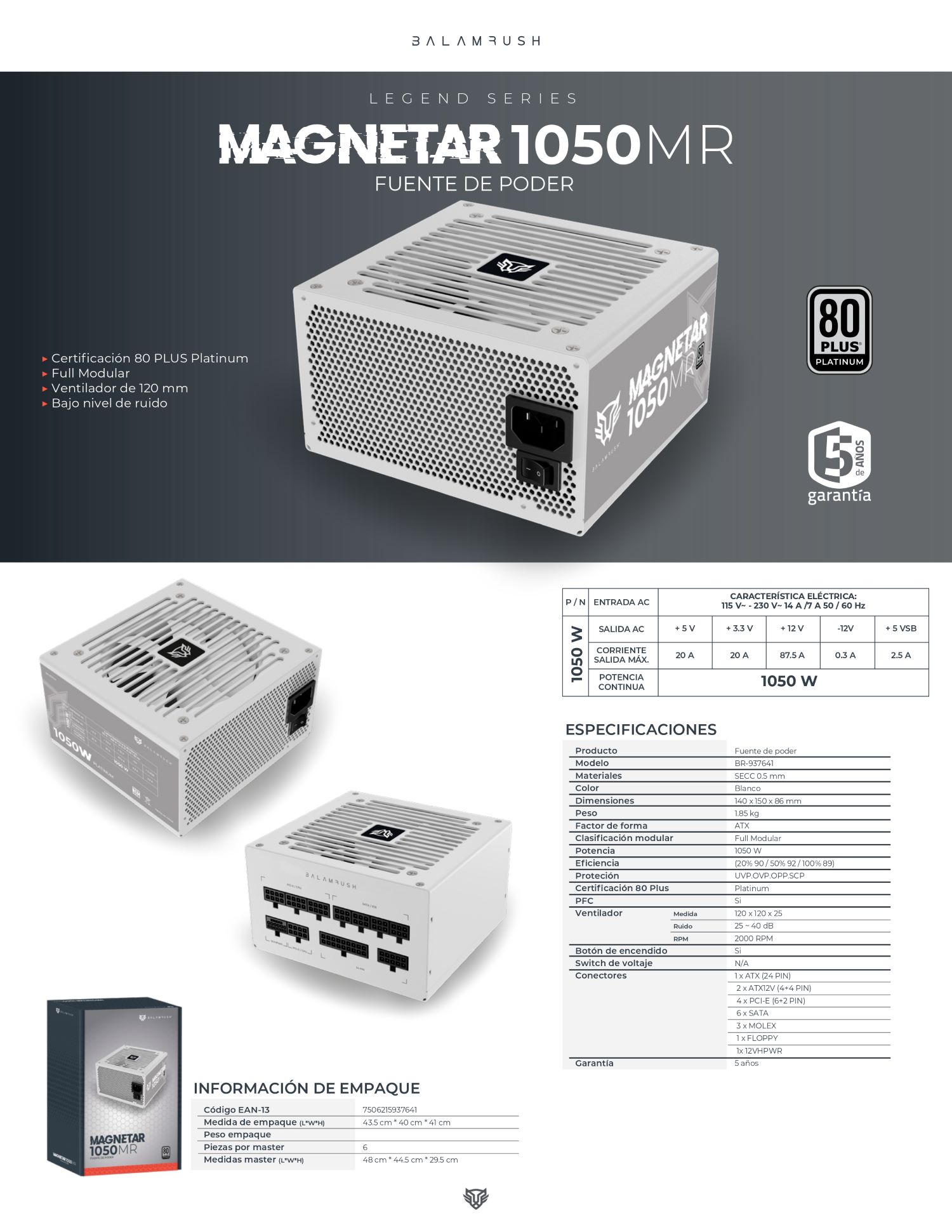 Fuente de Poder 1050W 80 Plus Platino BALAM RUSH MAGNETAR 1050MR LEGEND SERIES