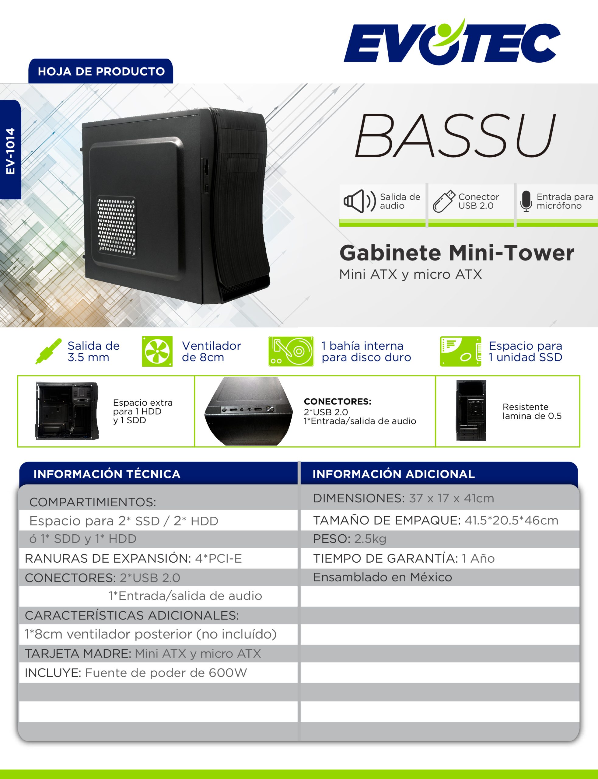 Availability: Out of StockGABINETE EVOTEC MINI ATX BASSU FUENTE 600W