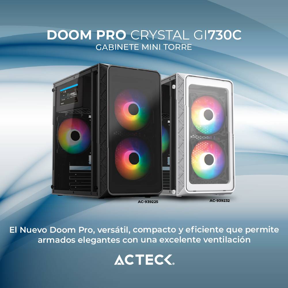Availability: In StockGabinete Mini Torre Acteck DOOM PRO CRYSTAL GI730C Factor: Micro Atx, Mini ITX, Puertos: 1 USB 2.0 1 USB 3.0 Puerto dual 3.5mm
