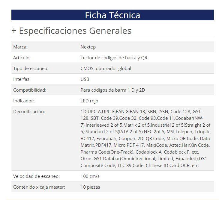 Lector de codigo de barras y QR Nextep NE-506