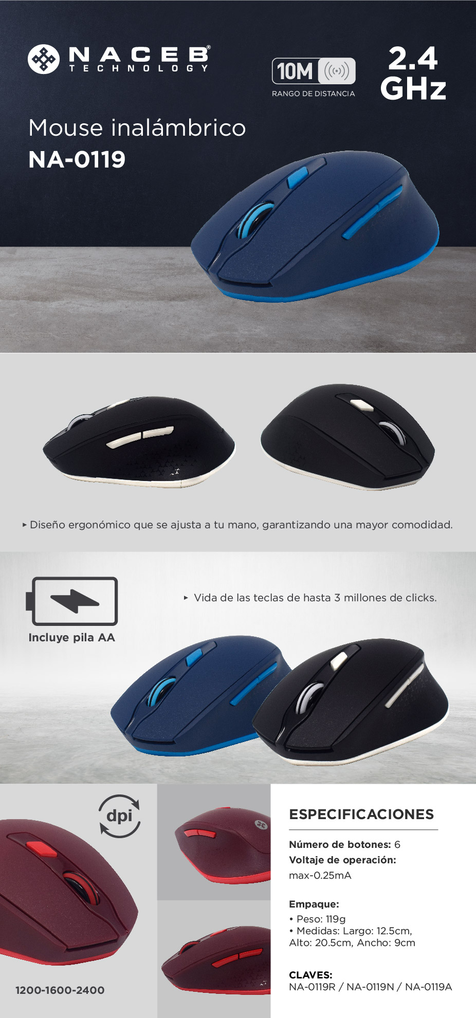 Atrás, Interruptor DPI, Adelante
