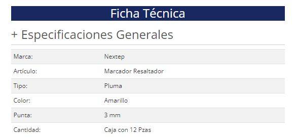 Availability: Out of StockResaltador Nextep NE-084A Tipo Pluma color Amarillo punta Cincel con 12 piezas
