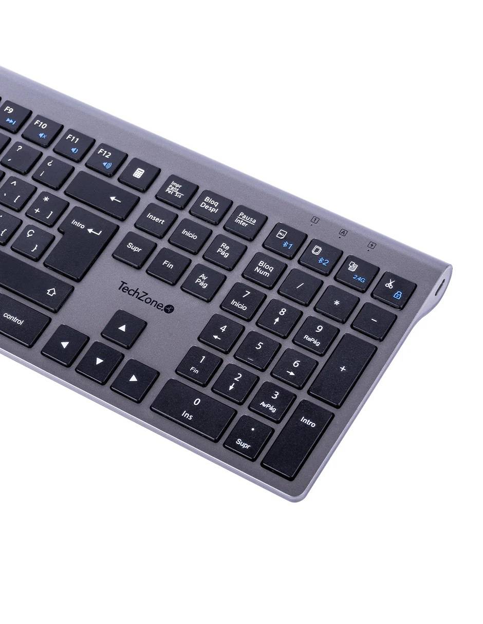 Availability: In StockTeclado HEFESTOS recargable con conexión Bluetooth TECHZONE TZACTCB01 color plata, QWERTY. Compatibilidad: Windows, Android y MacOS.